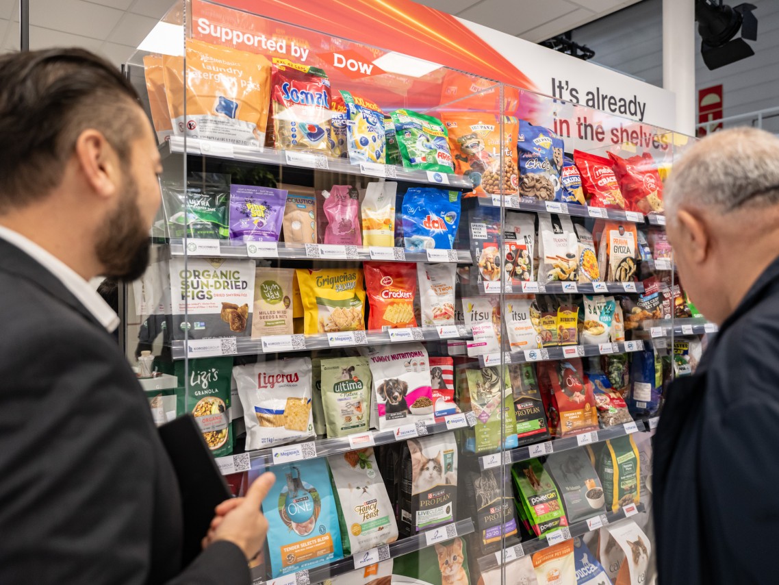 - With Dow a recyclable high barrier sachet; while conventional sachets rely on metallized films, W&H´s blown mono-material contains less than 2% EVOH, exceeding according to recycling regulations